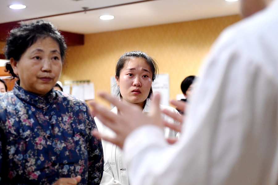 ????謝女士家人與醫生溝通捐贈角膜事宜。