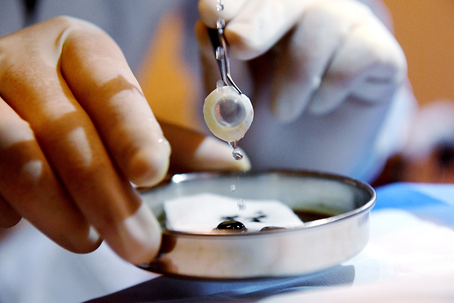 ????一番鞠躬告別,大家的眼角都濕潤了。屈醫生鎮定情緒,拿出手術刀快速將眼角膜取好,用冰袋保存。“只有快才能保證細胞數量。”屈醫生說。