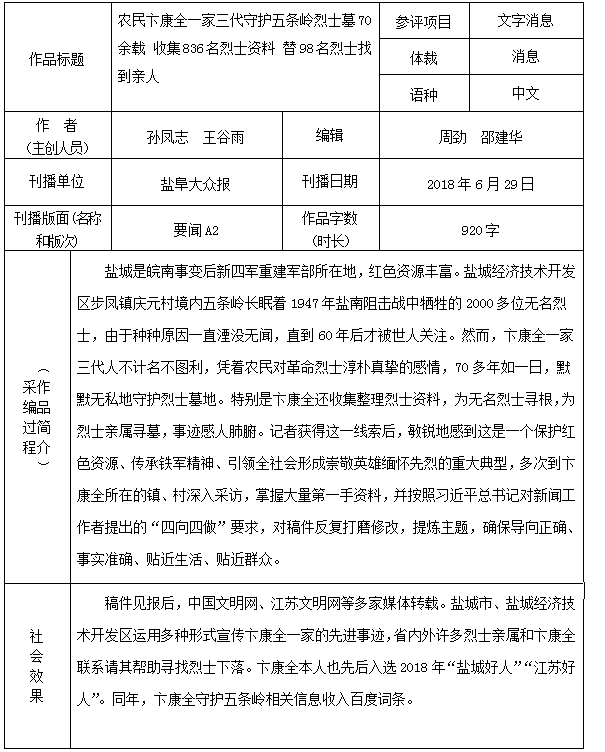 農民卞康全一家三代守護五條嶺烈士墓70余載 收集836名烈士資料 替98名烈士找到親人