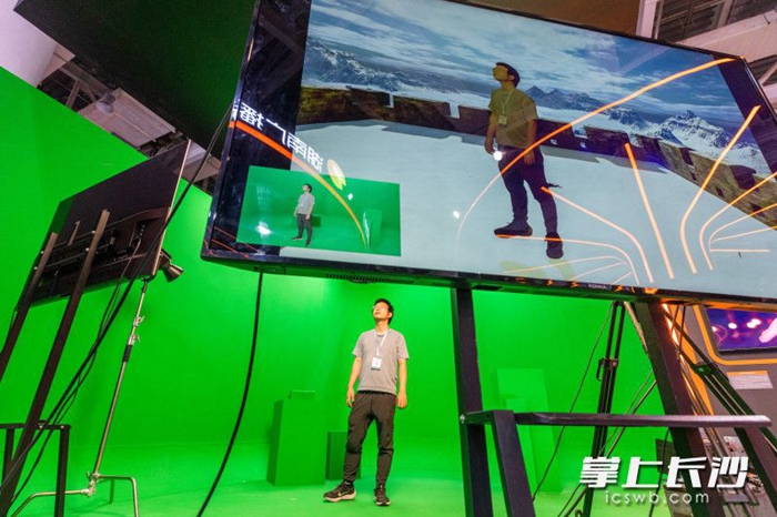 湖南廣電推出的沉浸式XR虛擬棚系統:借助XR高精度LED屏幕和XR虛擬擴展技術,可獲得電影級畫質效果的沉浸式實時拍攝效果。均為長沙晚報全媒體記者 董陽 攝