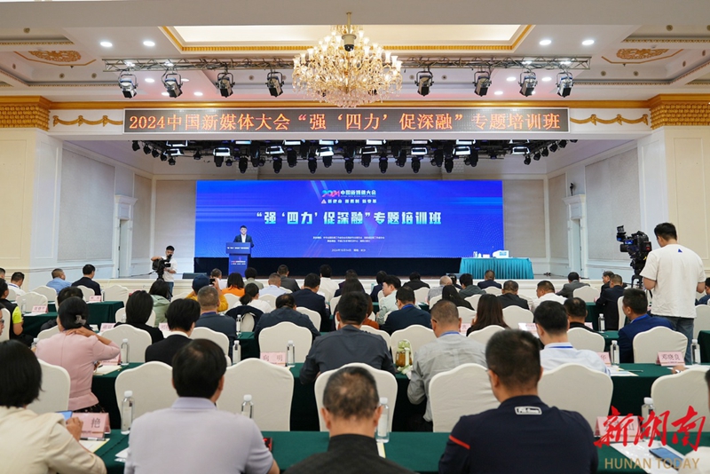 10月14日,2024中國新媒體大會“強‘四力’促深融”專題培訓班在長沙開班。培訓班為期一天,湖南省直媒體、市州媒體、縣級融媒體中心及省外縣級融媒體中心、新聞單位新媒體部門負責人和采編一線記者共260人參加。