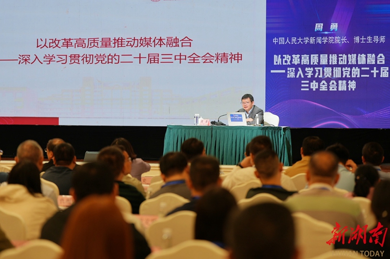 中國人民大學新聞學院院長、博士生導師周勇梳理、回顧我國媒體融合發展歷程與成效,結合黨的二十屆三中全會對媒體融合提出新要求,從機制重構、技術升維、效果升華等角度探討以改革高質量推動媒體融合的路徑。他強調:“新聞輿論工作是推進黨的事業、國家治理的重要手段。主流媒體要走在正道上,彰顯專業、社會價值。”